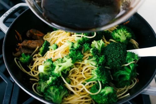 This list of ingredients may look long, but don’t worry, you probably have most of these items on hand. Traditional asian ingredients like hoisin sauce, soy sauce, and sesame oil are staples you will use again and again for delicious asian flavors. This Garlic and Beef Broccoli Lo Mein also uses a little bit of garlic, brown sugar, and pepper give the best spice to the sauce!
