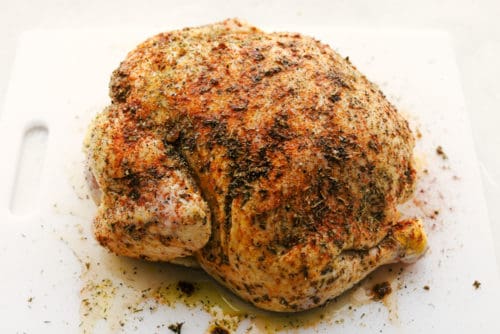 - Season: When you season the chicken, do it generously and completely. You want to cover the bird well so it will taste amazing all over.