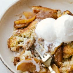 Not only does this old fashioned apple cobbler taste amazing, but it is versatile and easy to make. The recipe is quick and easy to follow and is impossible to mess up.  Everyone will be amazed at how soft and sweet this cobbler is.  Pair it with a large scoop of vanilla ice cream and this dessert will be the star of the meal!