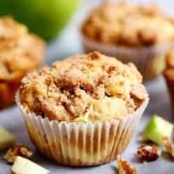 These muffins are the perfect fall muffins and you must put them on your baking list as soon as you can! You are going to love every single thing about them from the buttery and moist muffin, to the apples and walnuts hidden inside, to the cream cheese center, and the cinnamon sugar crumb topping! You will want to bake these again and again!
