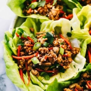 These Asian turkey lettuce wraps make fantastic leftovers! Place the turkey mixture in an airtight container and the lettuce in a separate airtight container. Put them in the fridge, and these leftovers will last 2-3 days. When you are ready to eat them, reheat the turkey mixture in the microwave for 1-2 minutes (or until heated through) and place it on a cold piece of lettuce. Wrap and enjoy!