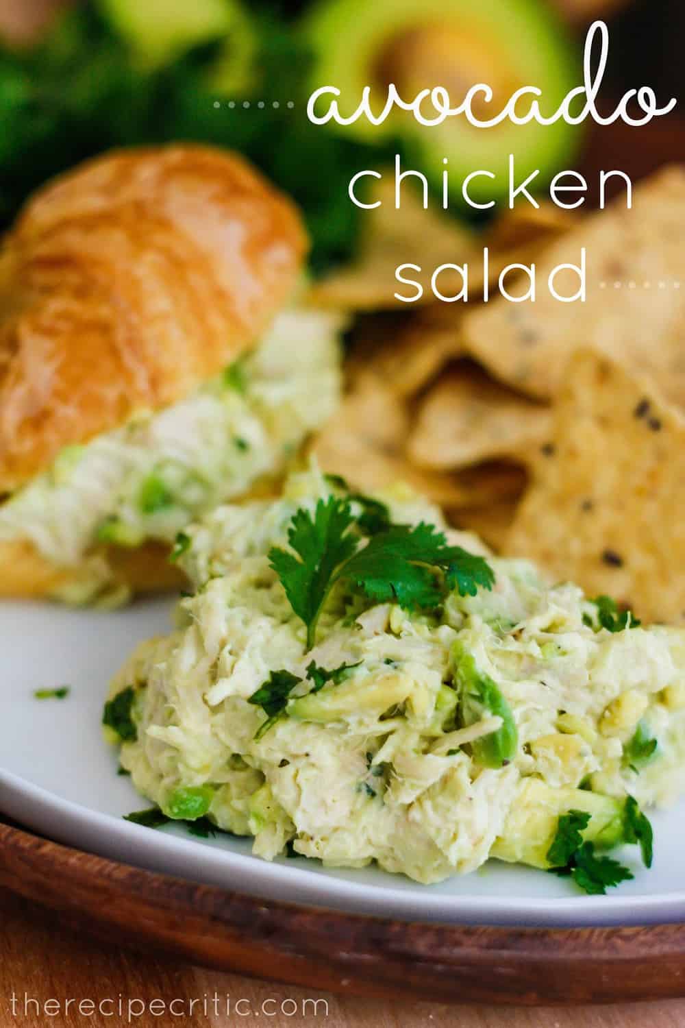 Avocado Chicken Salad is easy to make and you will never want to make your chicken salad without avocado again! Perfect on a sandwich, croissant or served with tortilla chips!