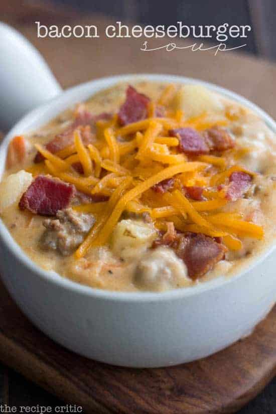 This website or blogger of the recipe critic has the best recipes! Bacon cheeseburger soup is 10 of 10 and I’ve tried other recipes from this site everything is A+