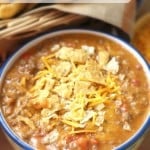 - Serve with additional shredded cheese on top and crushed tortilla chips.
