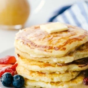 Serve these delicate pancakes with a pat of butter and this To Die For Buttermilk Syrup or Homemade Strawberry Freezer Jam. Add some Scrambled Eggs and Perfectly Baked Bacon for a breakfast that will surely satisfy any hunger.