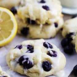 Perfect moist and puffy cookies with fresh blueberries bursting inside. These cookies are a mix between a blueberry muffin and a soft and chewy cookie. Drizzled in a lemon glaze, these will become a new favorite!