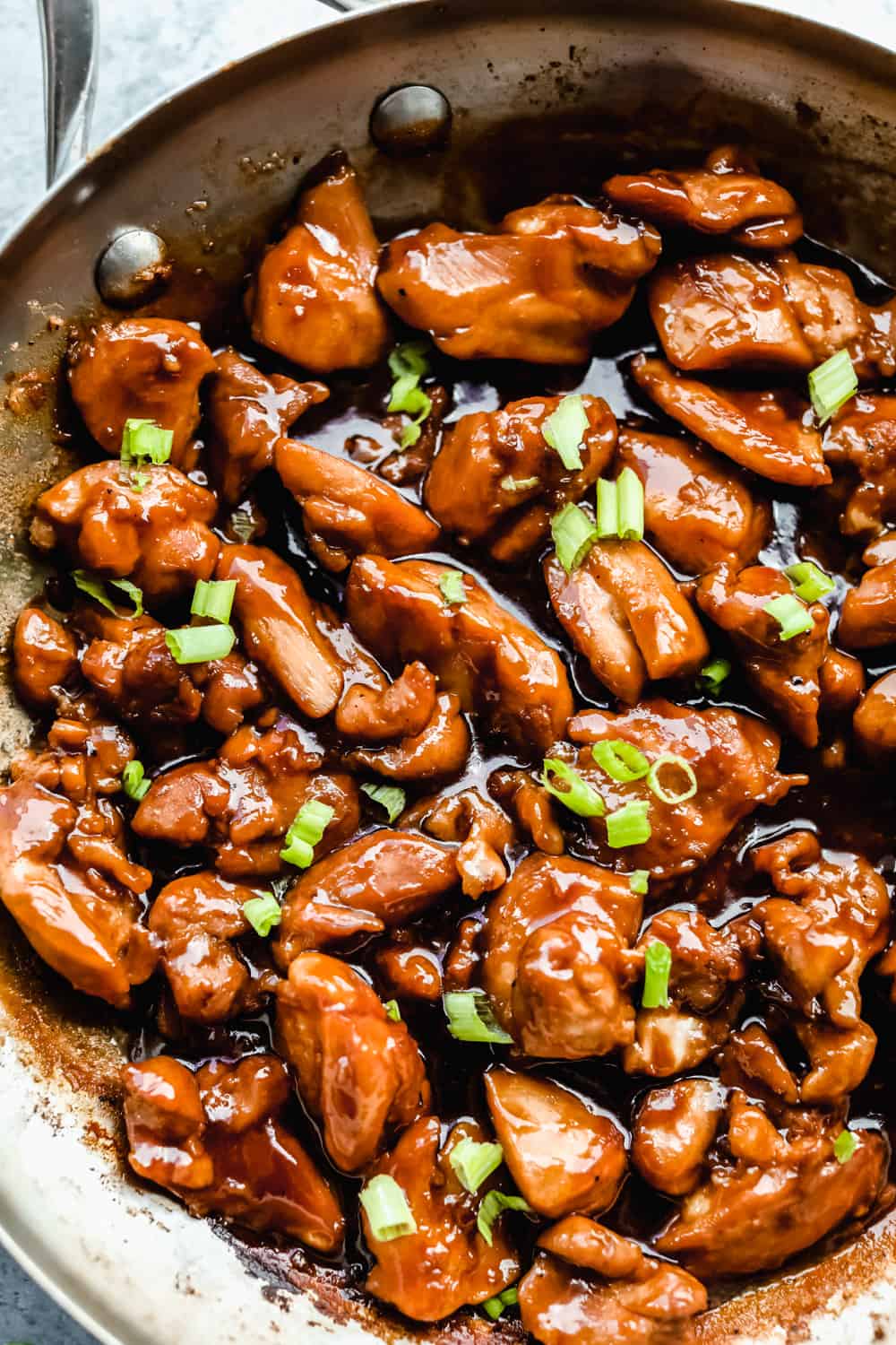 - Combine chicken and sauce in a skillet: Pour the sauce over the chicken and simmer for 3-4 minutes until the sauce thickens up. Serve over rice and garnish with chopped green onions if desired.